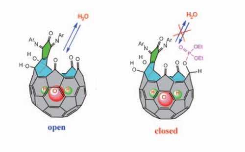 Группе ученых из различных научных учреждений Китая и Германии, возглавляемой Кианян Зангом (Qianyan Zhang), удалось спроектировать и изготовит миниатюрный контейнер, своеобразную"бутылку",способную сместить только одну молекулу воды. Собственно этот контейнер представляет собоймолекулу фуллерена,но не цельную, а с отверстием, которое может закрываться с помощью специальной"крышки",состоящей из молекулы фосфатного соединения.