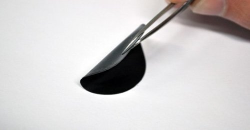 Эта графеновая"бумага"изготовлена из углерода, подвергнувшегося сложной химической обработке. Благодаря этой обработке атомы углерода сформировали монослойные шестиугольные структуры, известные как графен. Графеновая пленка сама по себе обладает достаточной механической прочностью, поэтому материал, толщиной с бумажный лист, состоящий из множества слоев графена удивительно прочен, несмотря на то, что он остается достаточно гибким.